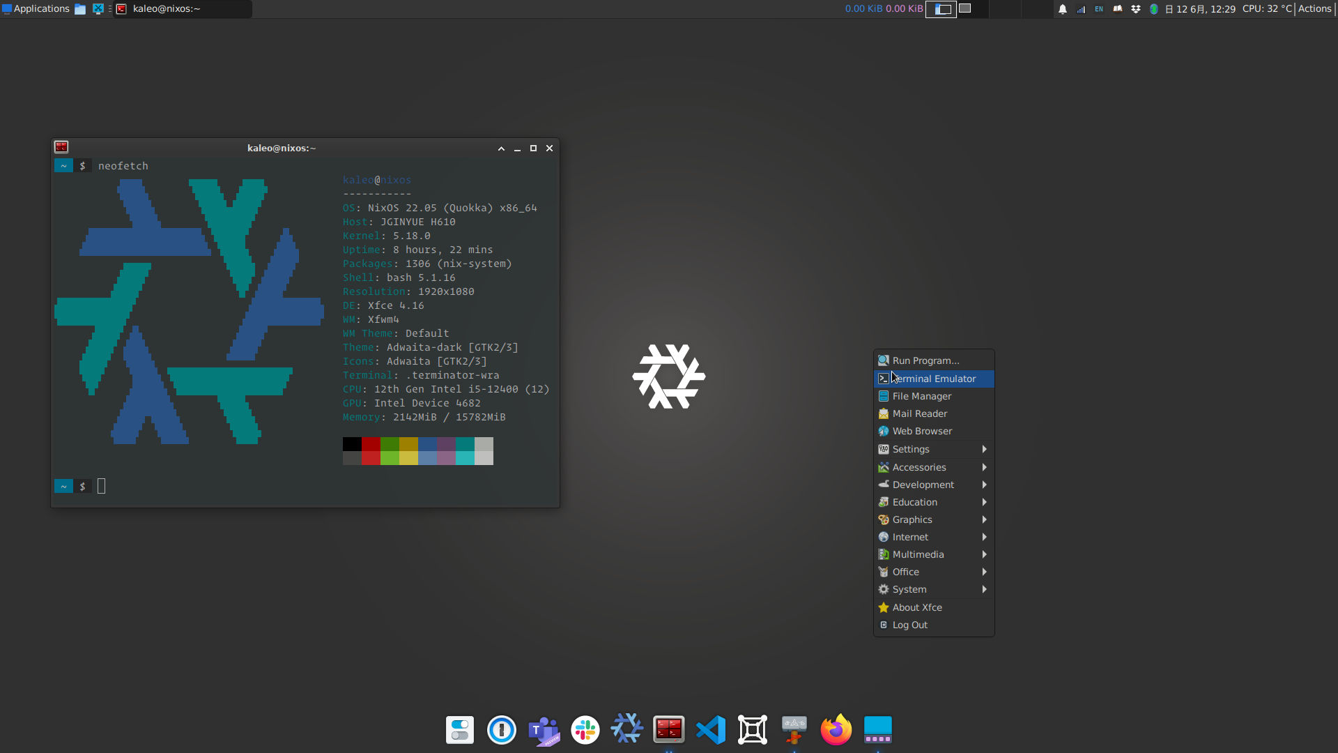 硬件完成之后,软件层面倒是简单明了,使用 NixOS + xfce 作为基本系统,然后在之上安装各种需要的软件。 我是 CrunchBang 的忠实粉丝,它几乎陪我度过了整个大学时光,所以我希望新的系统也能在风格上和 CrunchBang 靠近。考虑到很多 CrunchBang 中使用的软件已经有一些过时,我选取了一些同样功能的替代软件,最终如下: